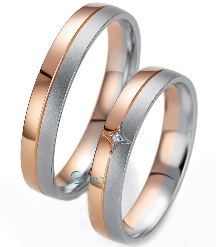 BREUNING Smart Line Rose Gold & White Gold Wedding Rings 8K or 14K or 18K