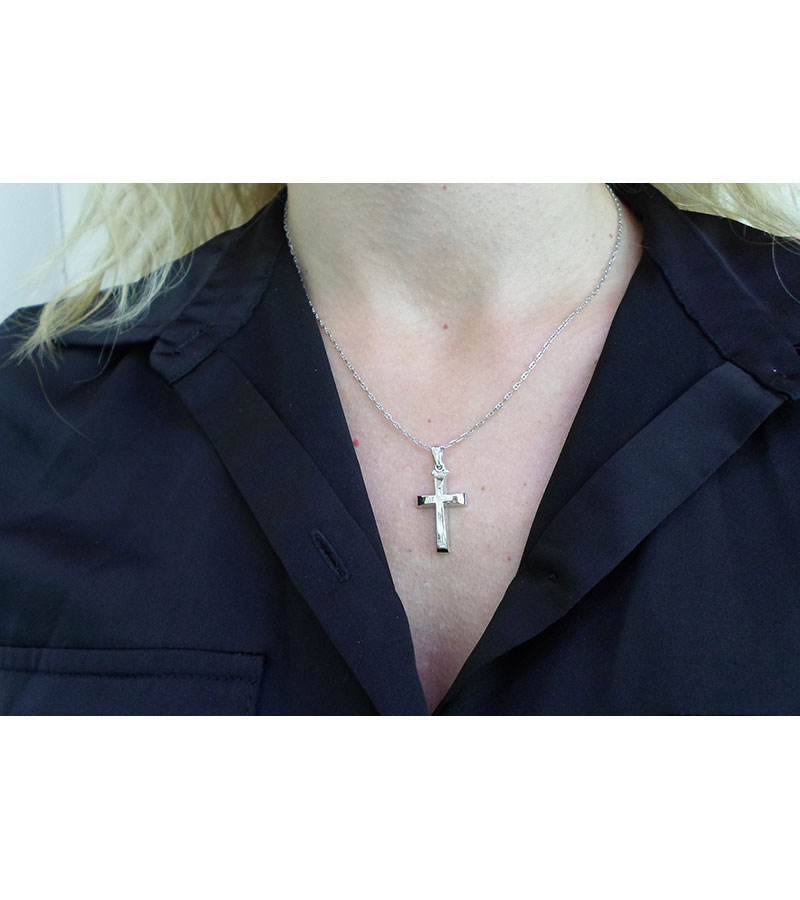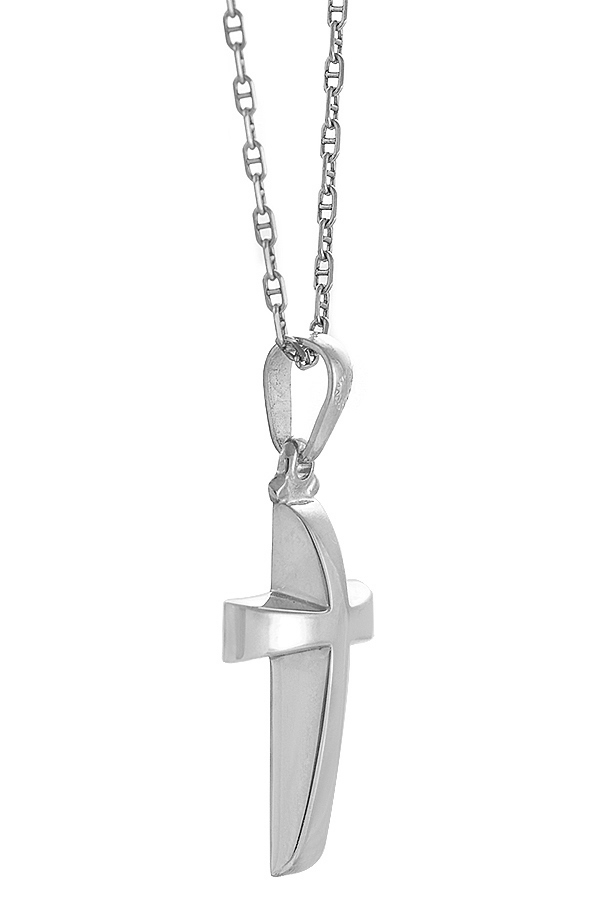 14K White Gold Cross GO50787 with 9K Gold Chain
