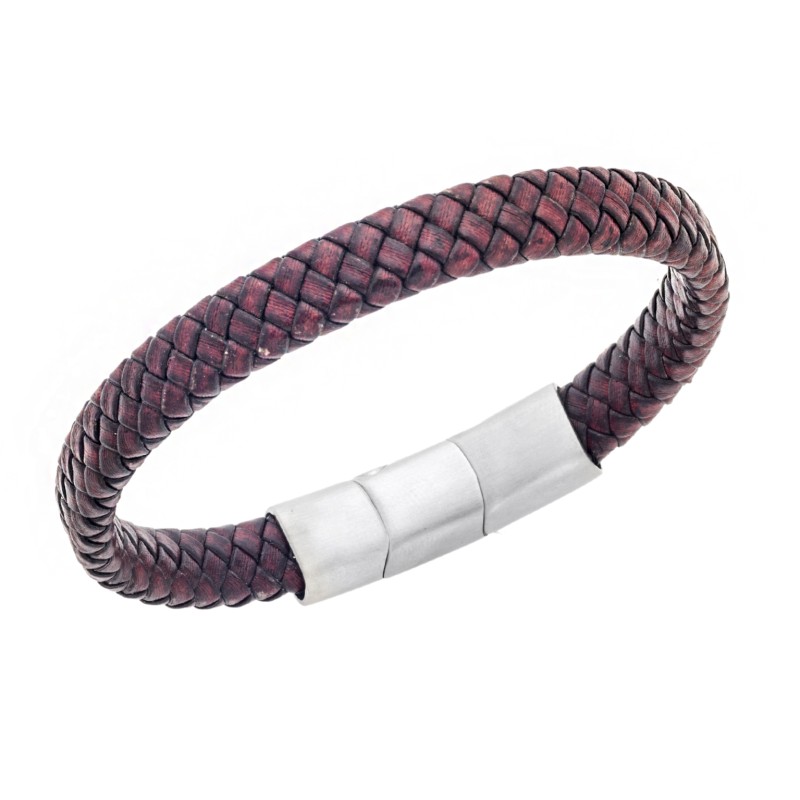 Βραχιόλι Senza Stainless Steel - Black & Bordeaux Leather Strap
