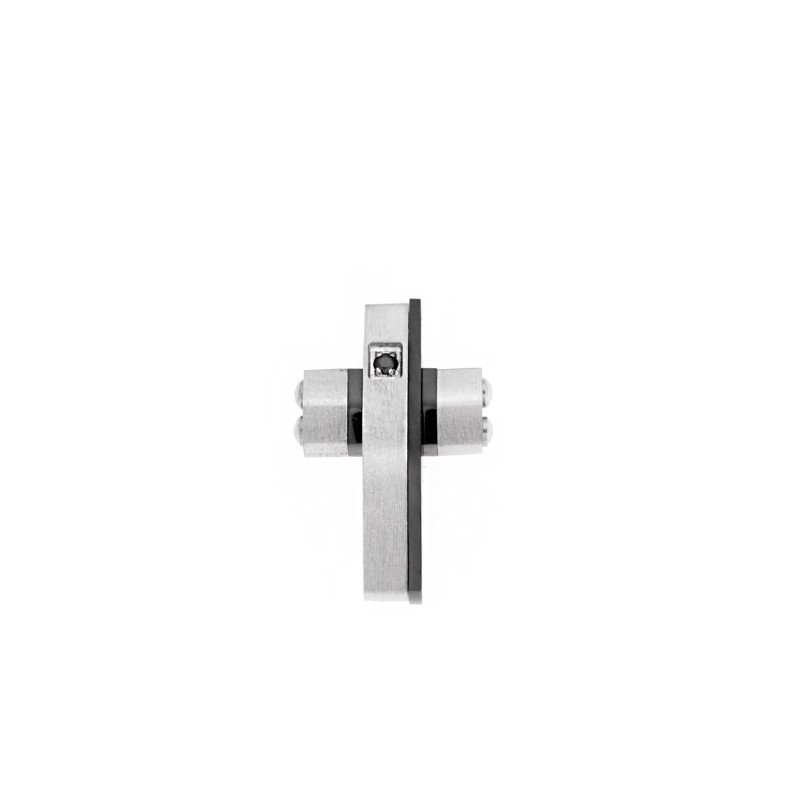 Κολιέ Senza Steel, Δίχρωμος Σταυρός από Ατσάλι, με μαύρη πέτρα