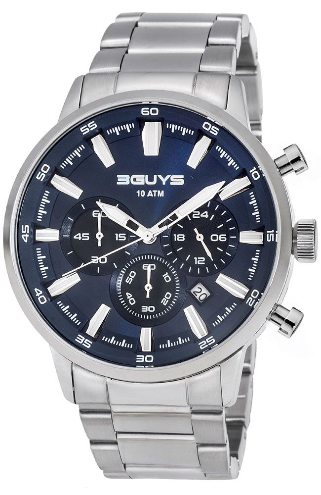 3GUYS Chronograph Silver Stainless Steel Bracelet