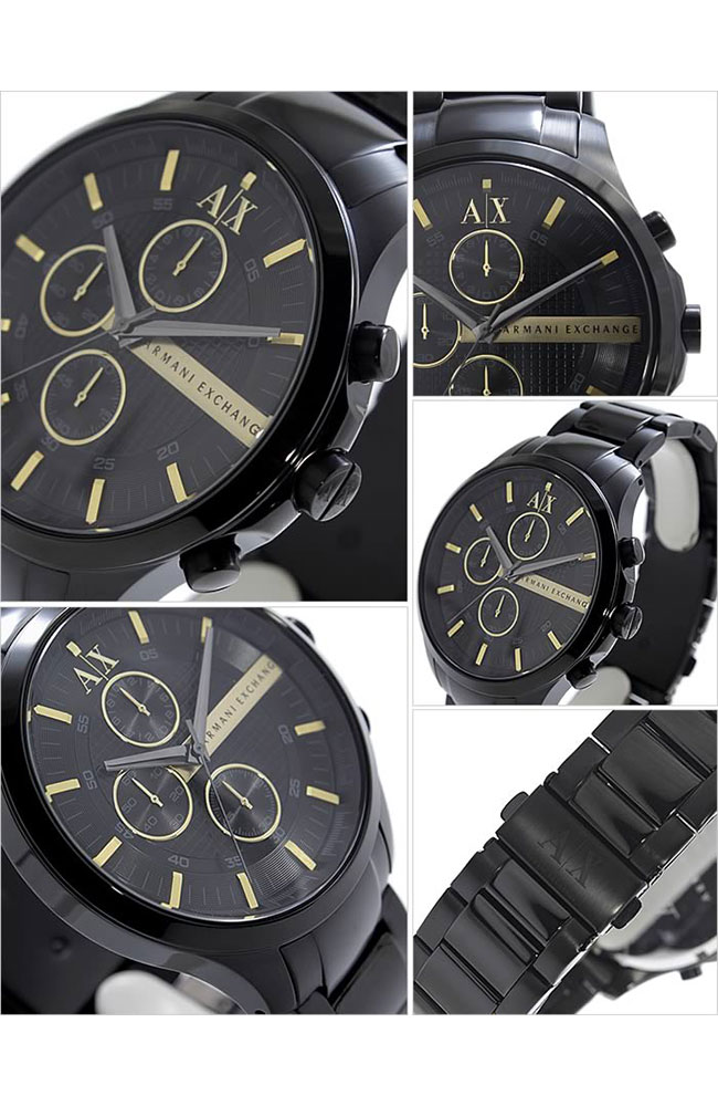 Ανδρικό ρολόι χρονογράφος Armani Exchange από μαύρο ανοξείδωτο ατσάλι με μαύρο καντράν και μπρασελέ.