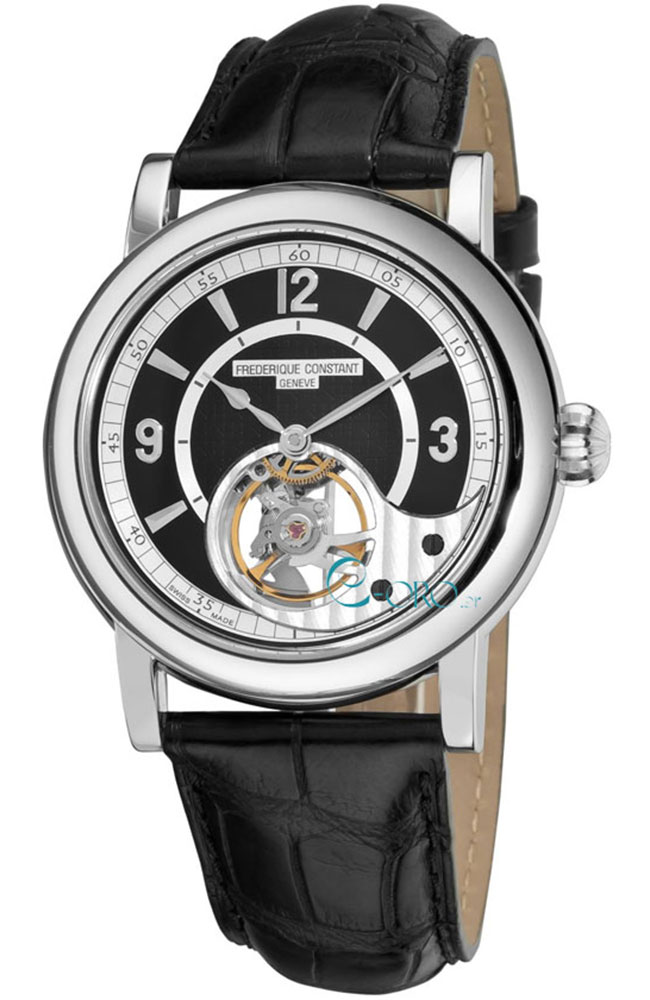 Ανδρικό ρολόι χειρός Frederique Constant Ελβετικής κατασκευής με αυτόματο μηχανισμό από ανοξείδωτο ατσάλι με μαύρο καντράν και μαύρο δερμάτινο λουράκι.