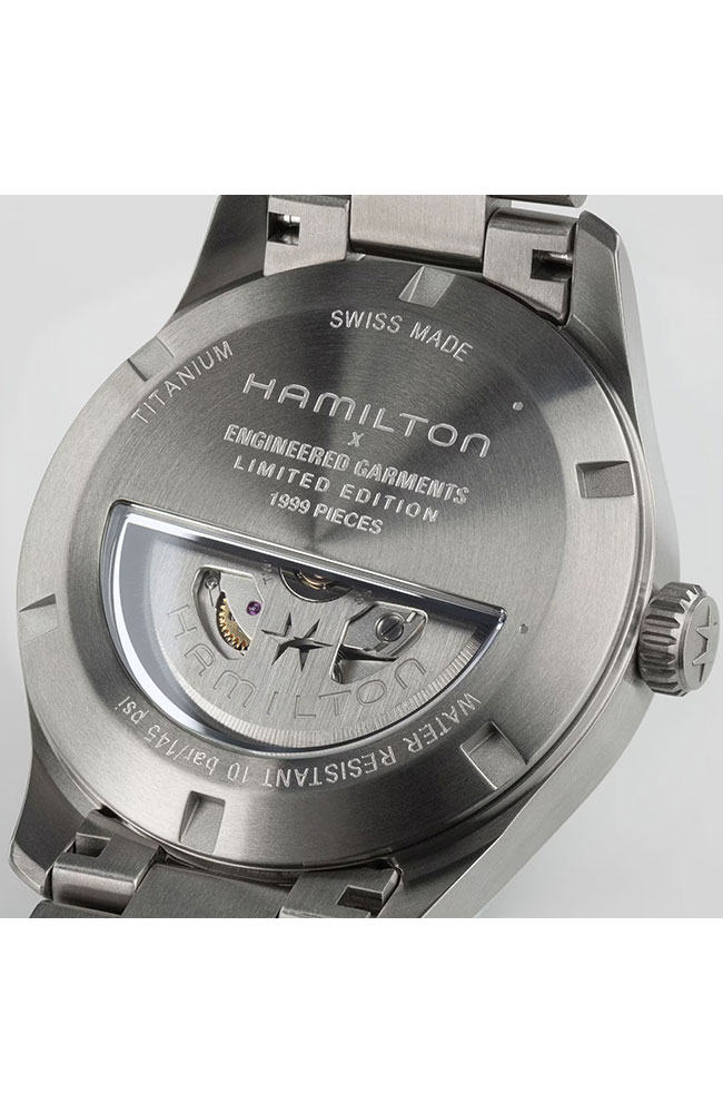 A collaboration like no other, this Hamilton X Engineered Garments Limited Edition timepieces seamlessly blends practical design with American tradition and military style. The Khaki Field Titanium is remodeled in a smaller 36mm unisex design in timeless, neutral colors and a titanium case and bracelet. The production is limited to 1,999 watches, to mark the founding date of Engineered Garments.