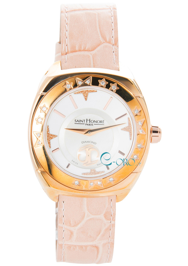 SAINT HONORE Diamonds Gold Pink Leather Strap