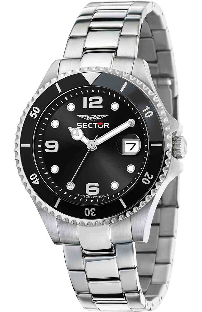 Ανδρικό ρολόι Sector από ανοξείδωτο ατσάλι με μαύρο καντράν και μπρασελέ.
