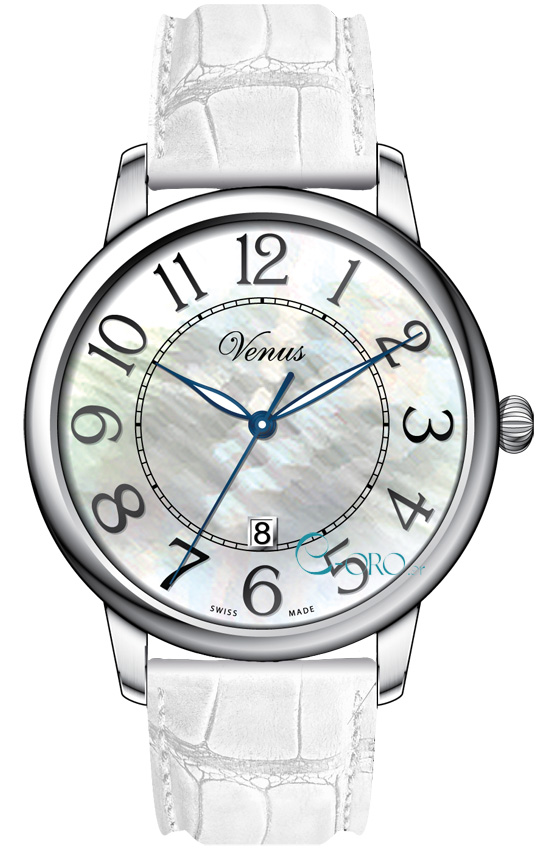 VENUS CLassico Time-Date White Leather Strap