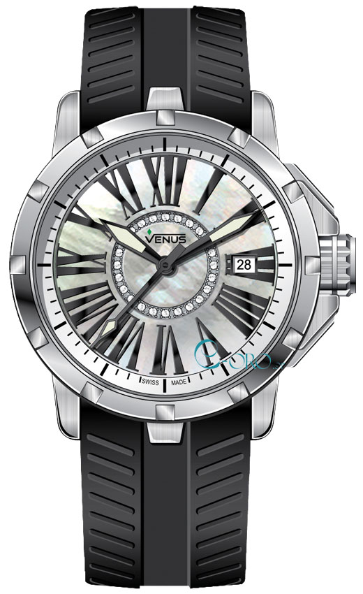 VENUS Genesis Diamonds Date Black Rubber Strap