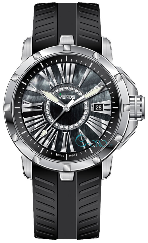 VENUS Genesis Diamonds Date Black Rubber Strap