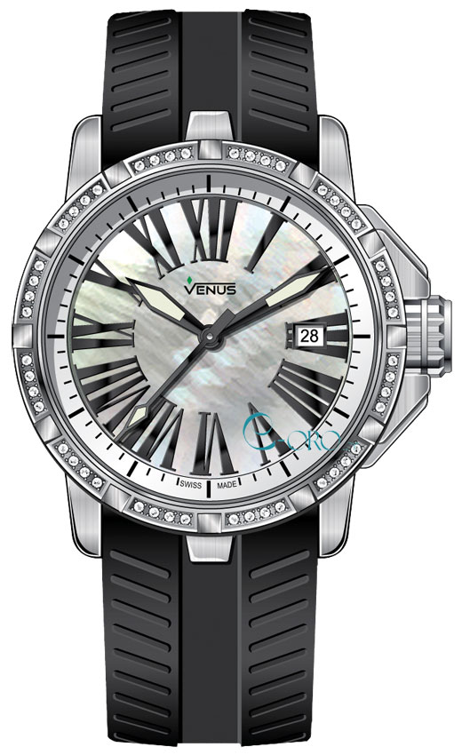 VENUS Genesis Diamonds Date Black Rubber Strap