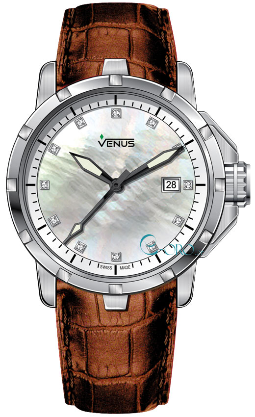 VENUS Genesis Diamonds Date Brown Leather Strap