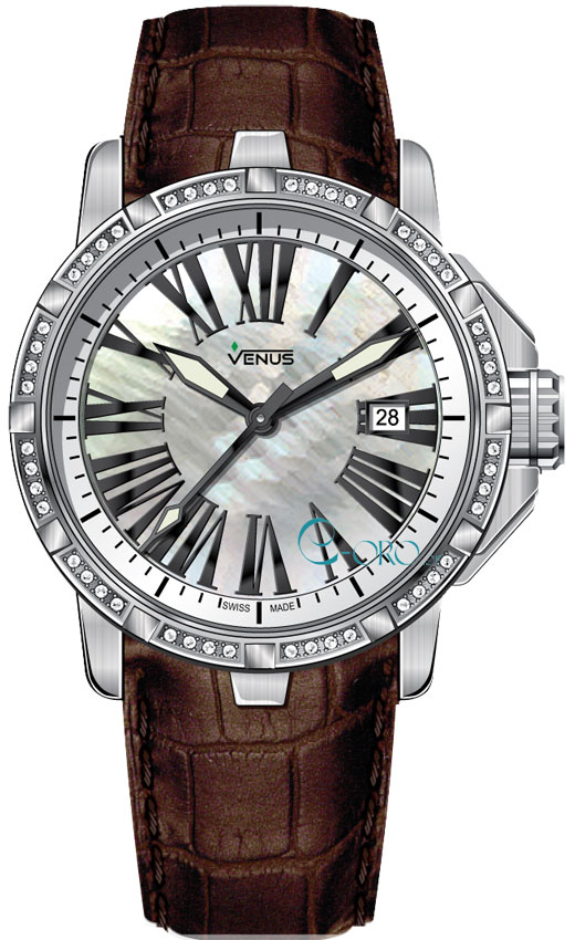 VENUS Genesis Diamonds Date Brown Leather Strap