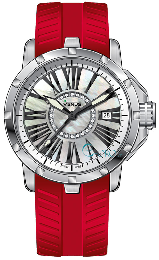 VENUS Genesis Diamonds Date Red Rubber Strap