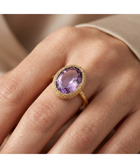 Δαχτυλίδι Χρυσό 14 καράτια με οβάλ μωβ πέτρα GO72113