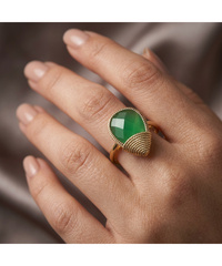 Δαχτυλίδι Χρυσό 14 καράτια με πράσινη πέτρα και πλεκτό σχ...