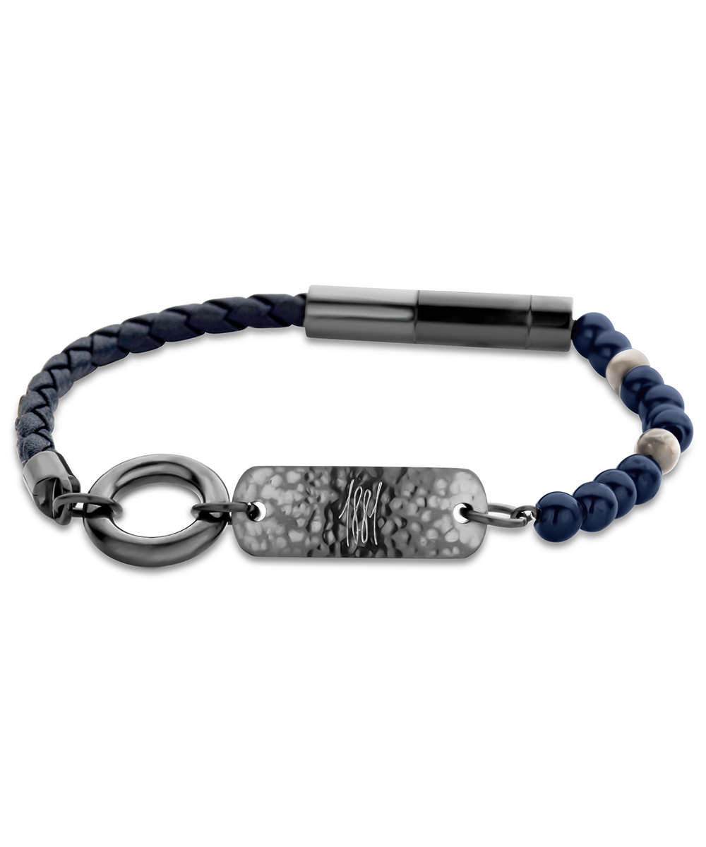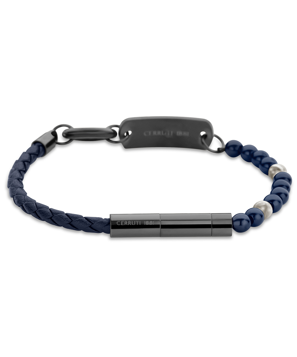 Ανδρικό Βραχιόλι Cerruti από μαύρο ανοξείδωτο ατσάλι με μπλε δέρμα.