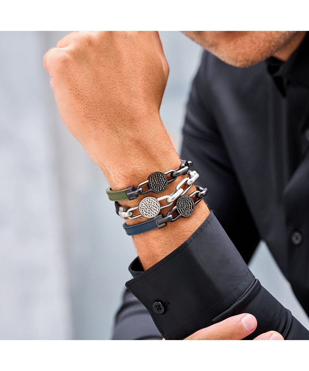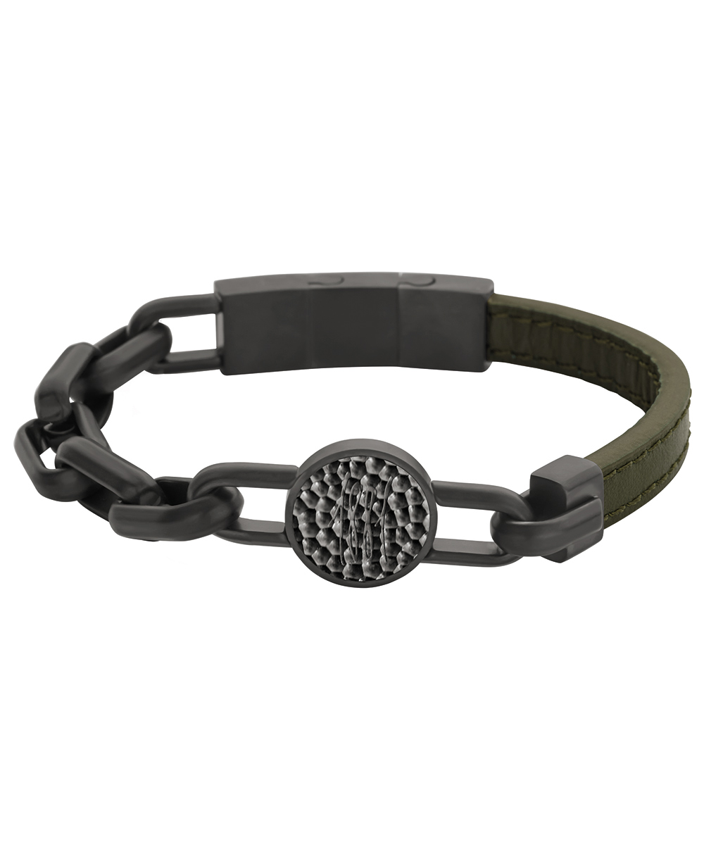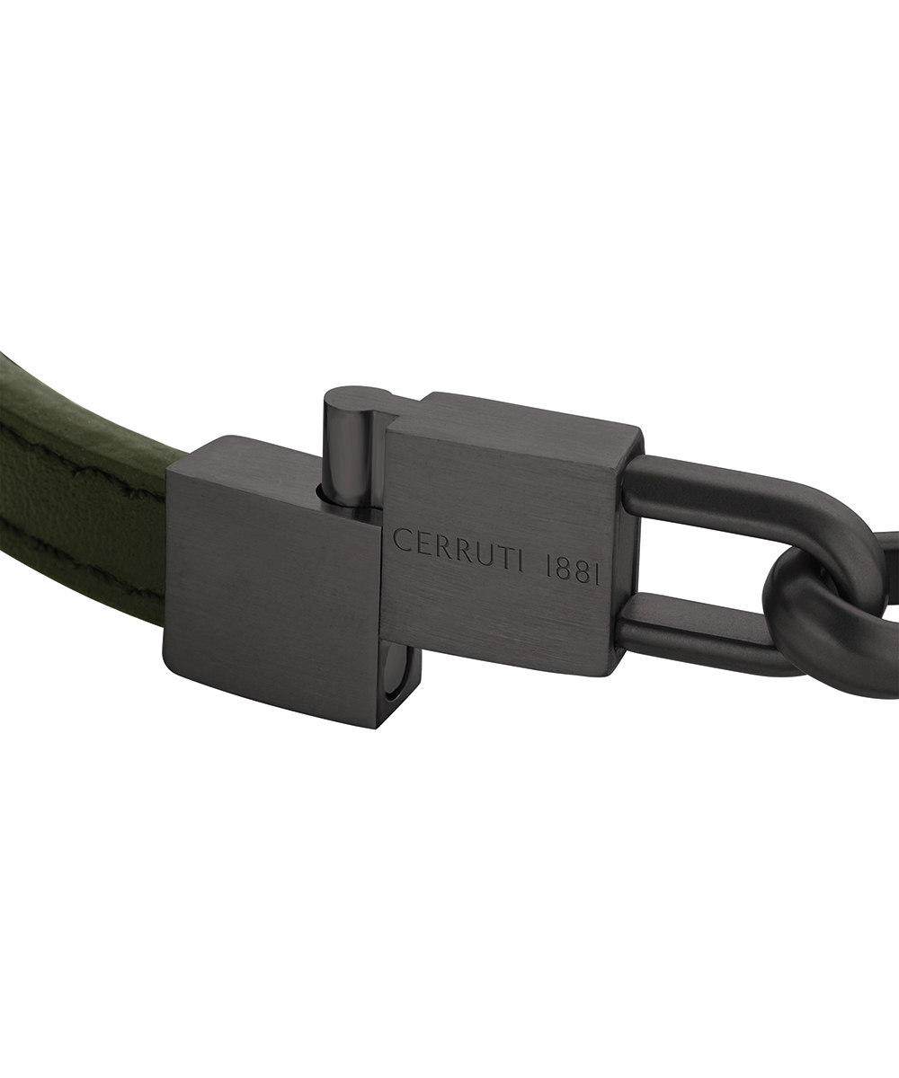 Ανδρικό Βραχιόλι Cerruti από μαύρο ανοξείδωτο ατσάλι με λαδί δέρμα.