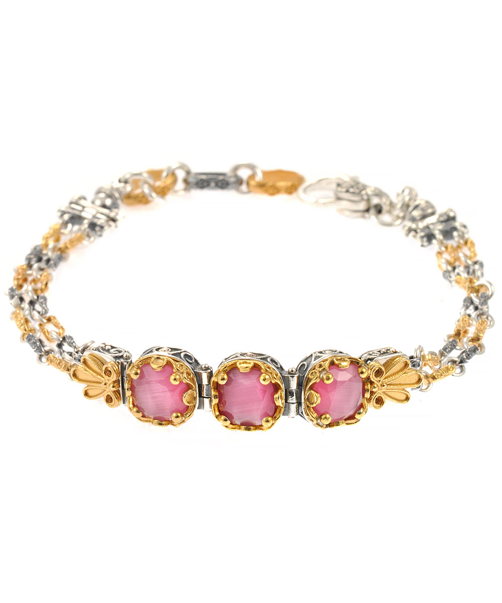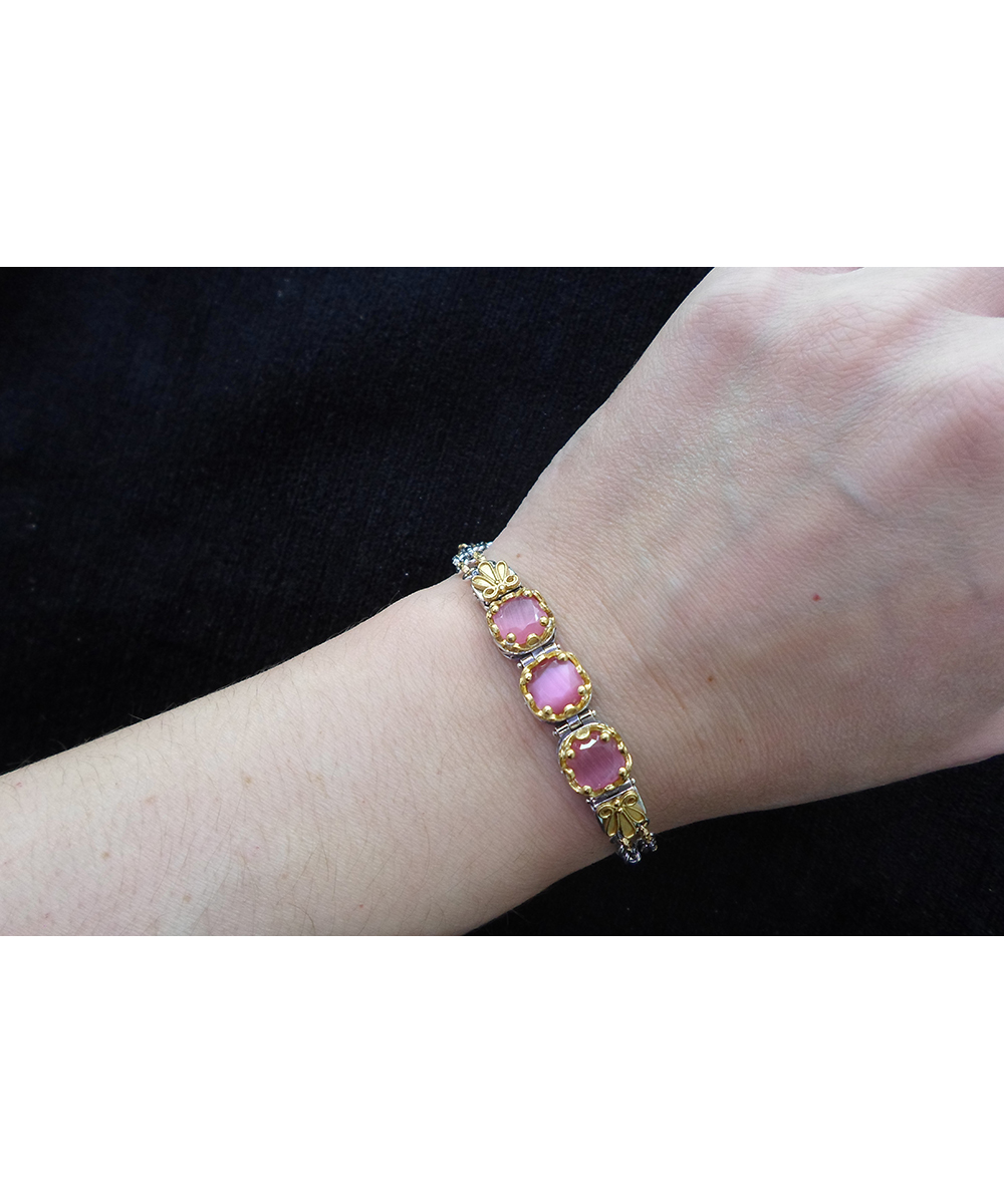 Γυναίκειο βραχιόλι Dimitrios Exclusive από επιπλατινωμένο ασήμι 925 με πέτρες Pink Tourmaline Eye.