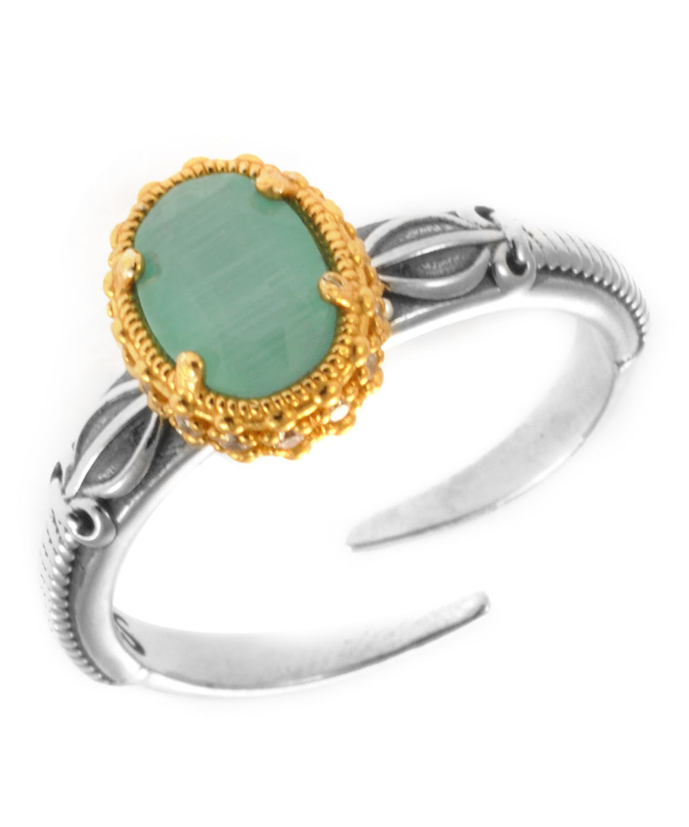 Γυναικείο δαχτυλίδι Dimitrios Exclusive από επιπλατινωμένο ασήμι 925 με πέτρα Erinite και με πέτρες Ζιργκόν.