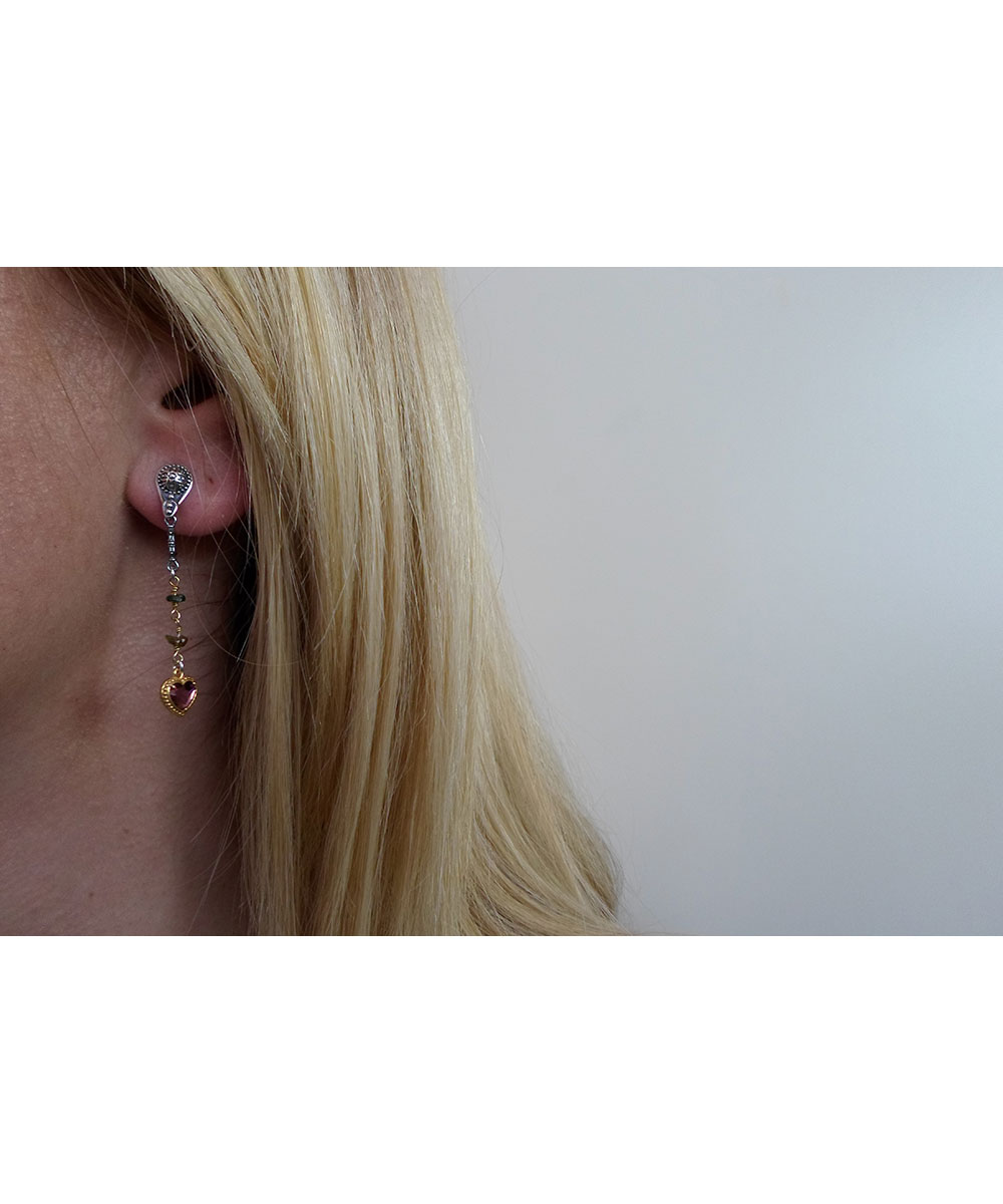 Γυναικεία σκουλαρίκια Dimitrios Exclusive από επιπλατινωμένο ασήμι 925 με χρωματιστές πέτρες.