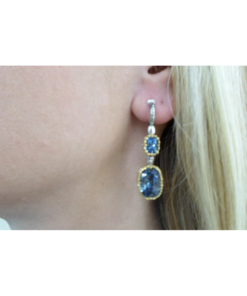 Γυναικεία σκουλαρίκια Dimitrios Exclusive από επιπλατινωμένο ασήμι 925 με πέτρες Denim Blue.