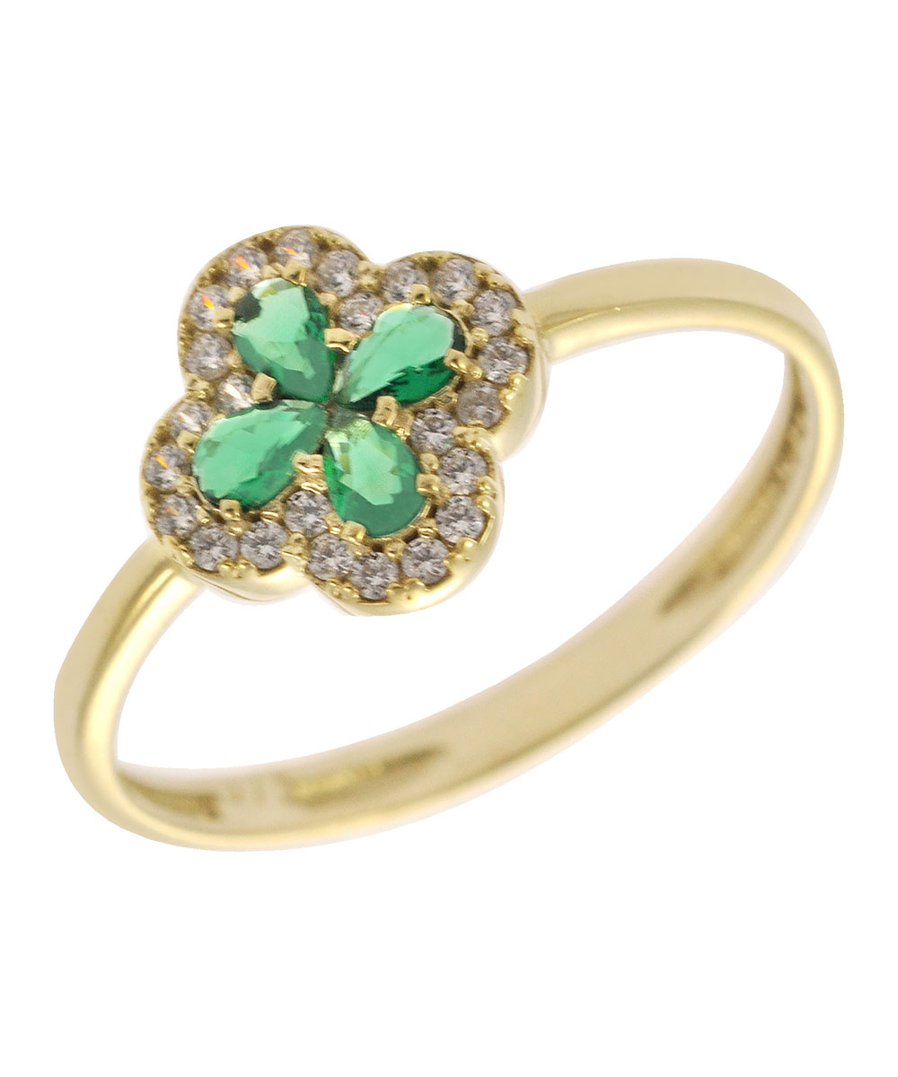 Δαχτυλίδι Χρυσό 9 καράτια με μοτίφ σταυρού, πράσινες πέτρες και λευκά Ζιργκόν