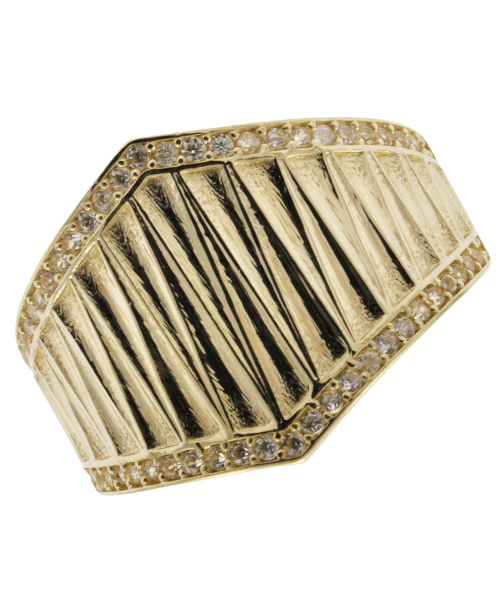 Δαχτυλίδι Χρυσό 9 καράτια με γεωμετρικές χαράξεις και λευκές πέτρες
