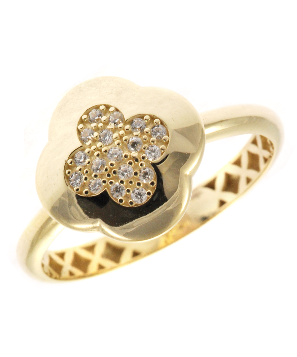 Κομψό χρυσό δαχτυλίδι 9 καράτια με εντυπωσιακό μοτίφ σταυρού, διακοσμημένο με λευκές πέτρες στο κέντρο για διακριτική αλλά ξεχωριστή λάμψη. Ο θηλυκός και ρομαντικός σχεδιασμός του το καθιστά ιδανικό για καθημερινές εμφανίσεις αλλά και για πιο ιδιαίτερες περιστάσεις. Ένα φίνο γυναικείο κόσμημα που συνδυάζει χρυσή λάμψη, αισθητική και διαχρονική κομψότητα.