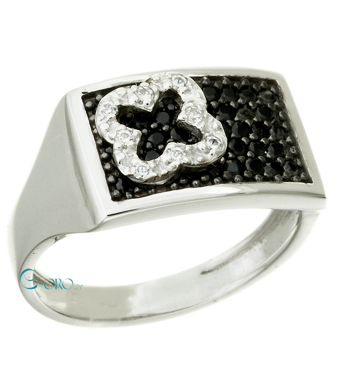 Γυναικείο Δαχτυλίδι Λευκόχρυσο 14 καράτια με πέτρες Ζιργκόν.