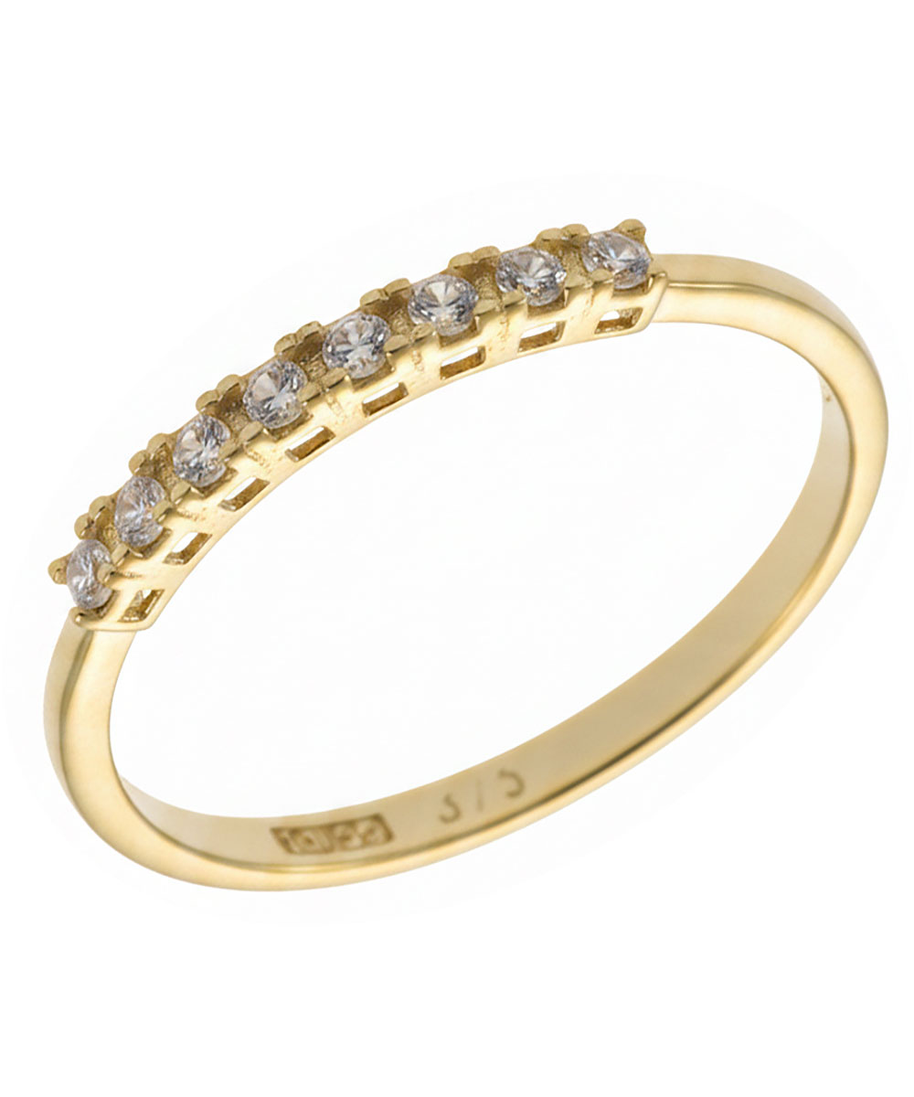 Μισόβερο Δαχτυλίδι Χρυσό 9 καράτια με λευκές πέτρες Ζιργκόν