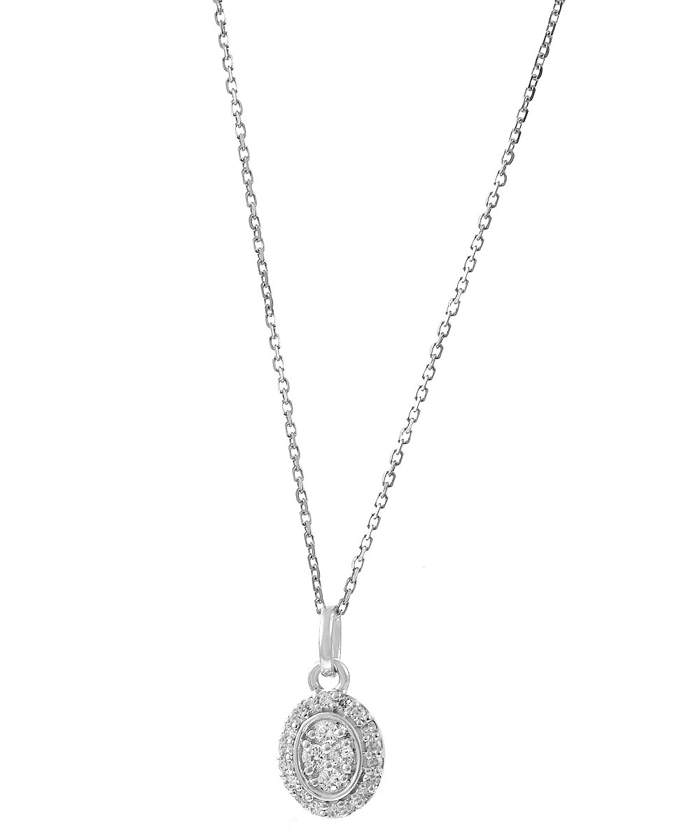 Μενταγιόν Λευκόxρυσo 18 Καράτια με Διαμάντια σε οβάλ σχήμα και με Αλυσίδα Χρυσή 14 Καράτια