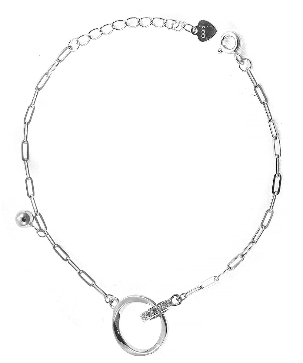 Σύγχρονο βραχιόλι από επιπλατινωμένο ασήμι 925° με κρίκο και λαμπερή λεπτομέρεια Ζιργκόν. Μοντέρνος σχεδιασμός που ταιριάζει σε καθημερινές αλλά και βραδινές εμφανίσεις.