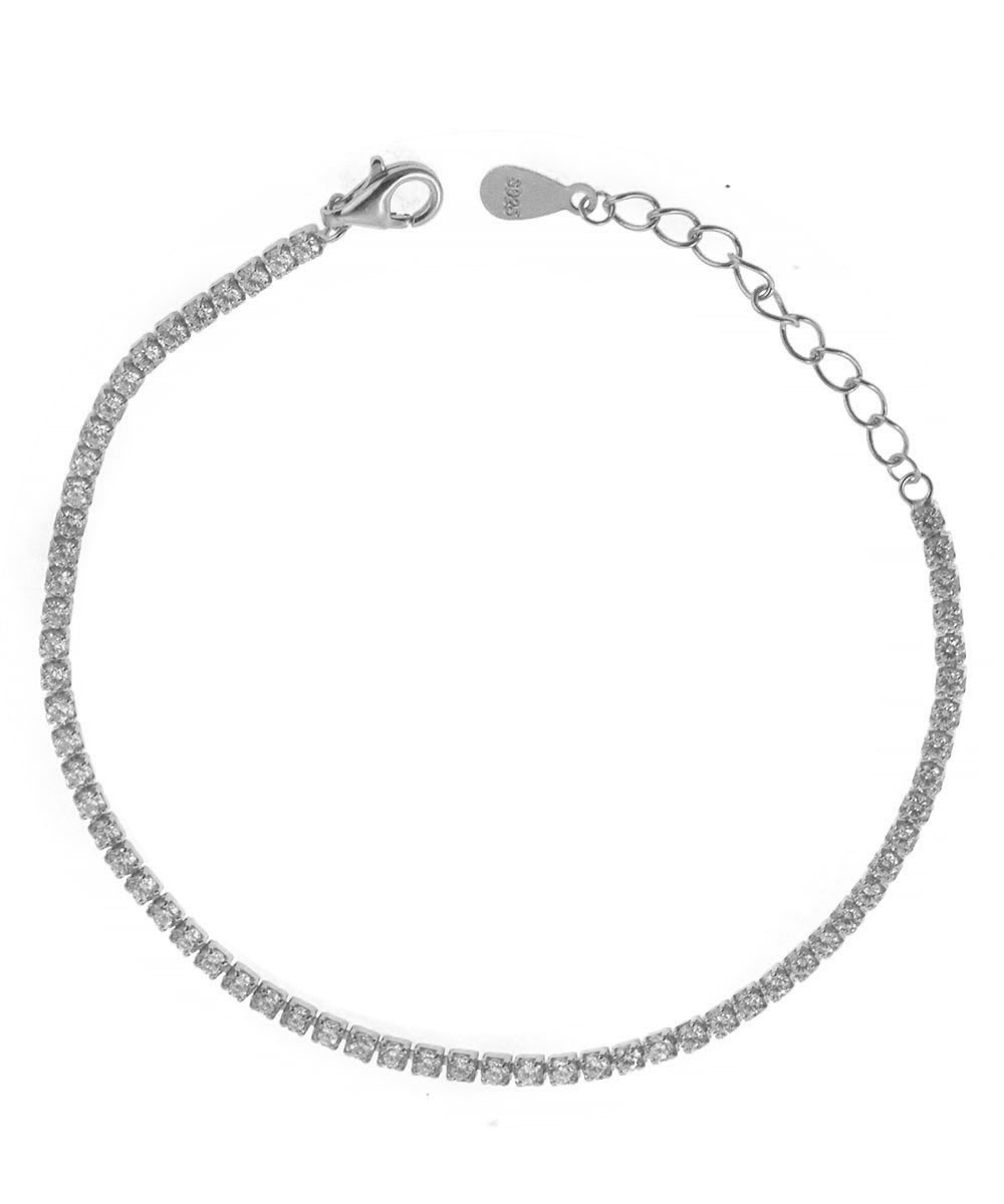Λαμπερό βραχιόλι από επιπλατινωμένο ασήμι 925° με λευκά ζιργκόν σε σειρά. Κομψότητα και διαχρονικό στυλ για κάθε περίσταση.