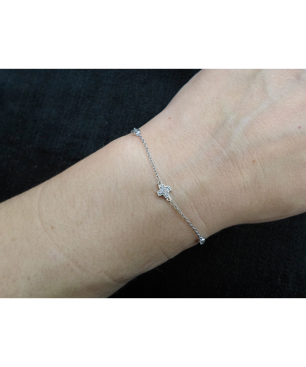 Λεπτεπίλεπτο βραχιόλι από ασήμι 925 με σταυρουδάκι και λαμπερά ζιργκόν. Minimal, διακριτικό και ιδανικό για καθημερινή κομψότητα ή για δώρο σε αγαπημένο πρόσωπο.