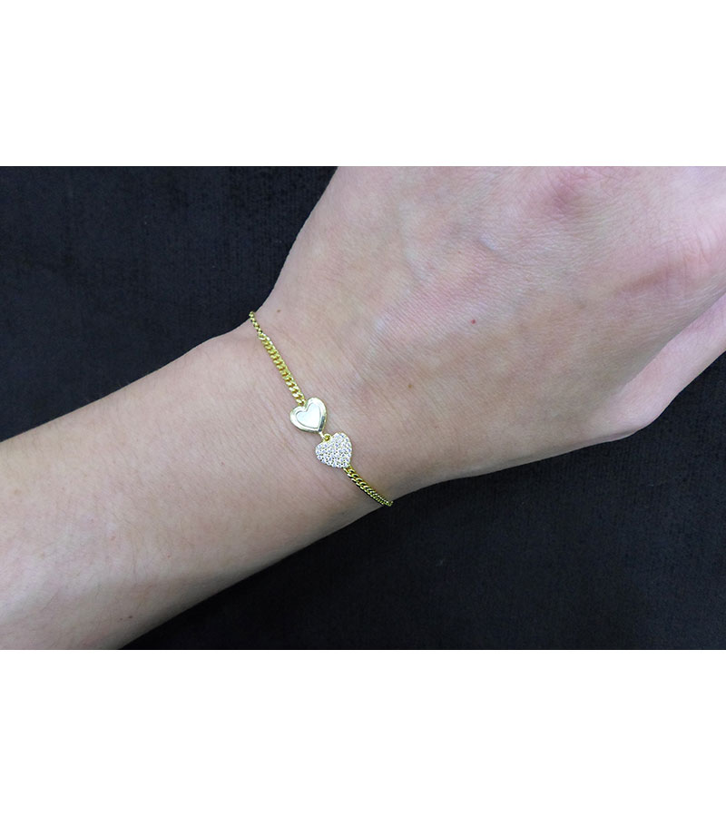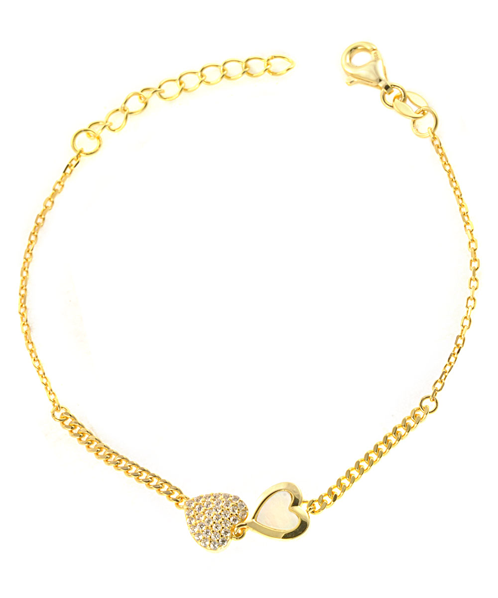Γυναικείο βραχιόλι από επιχρυσωμένο ασήμι 925 με πέτρες Ζιργκόν και με λευκό φίλντισι.