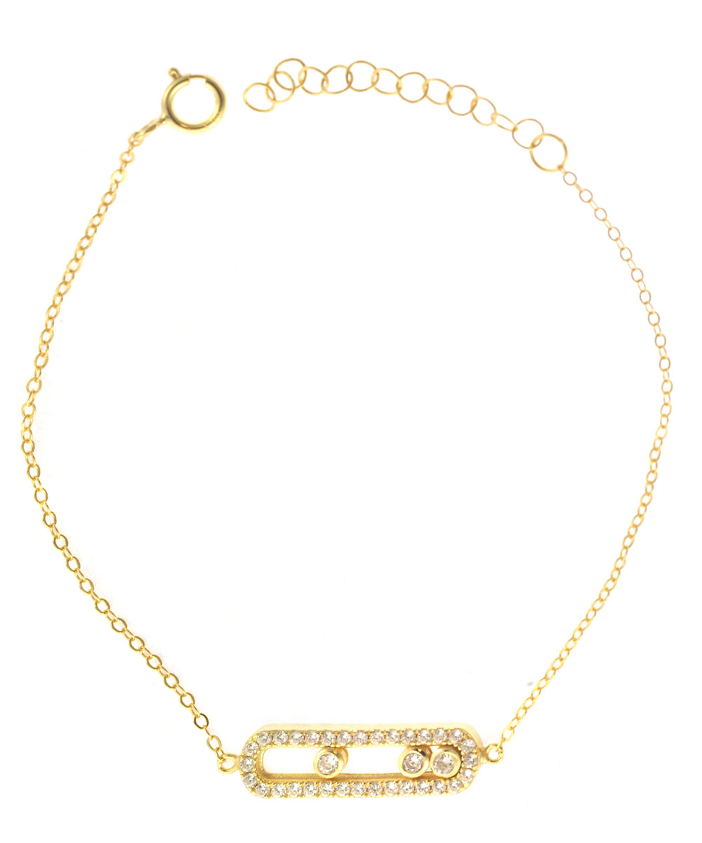 Κομψό βραχιόλι από επιχρυσωμένο ασήμι 925°, με κεντρικό γεωμετρικό μοτίφ διακοσμημένο με λαμπερά ζιργκόν. Διαθέτει λεπτή αλυσίδα και προέκταση για άνετη εφαρμογή στον καρπό. Minimal και μοντέρνο σχέδιο, ιδανικό για καθημερινή χρήση αλλά και για κομψές εμφανίσεις.