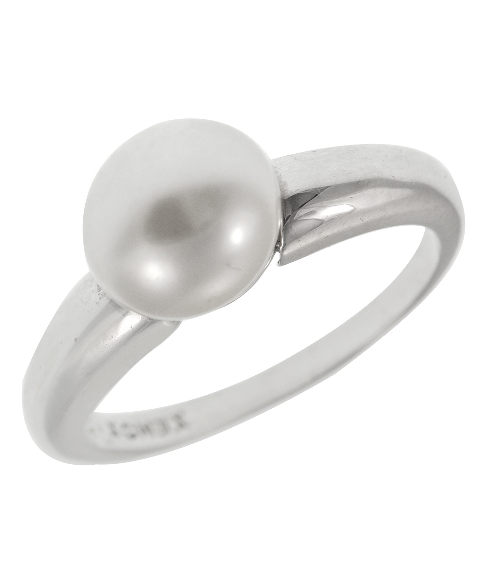 Γυναικείο Δαχτυλίδι από επιπλατινωμένο ασήμι με λευκή πέρλα.