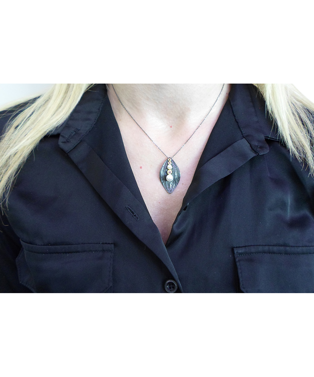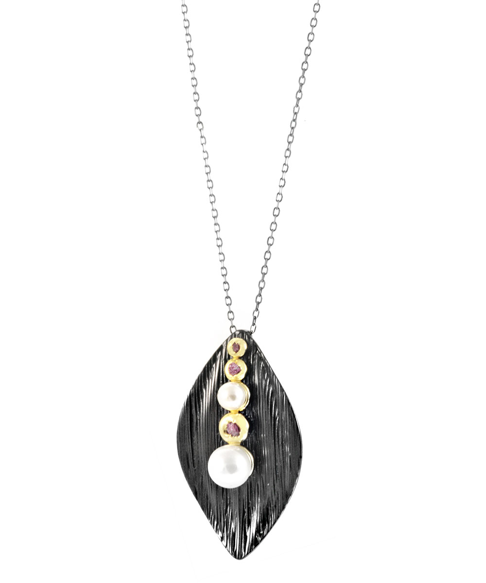 Γυναικείο Κολιέ από επιπλατινωμένο ασήμι 925 με λευκές πέρλες και με χρωματιστές πέτρες.