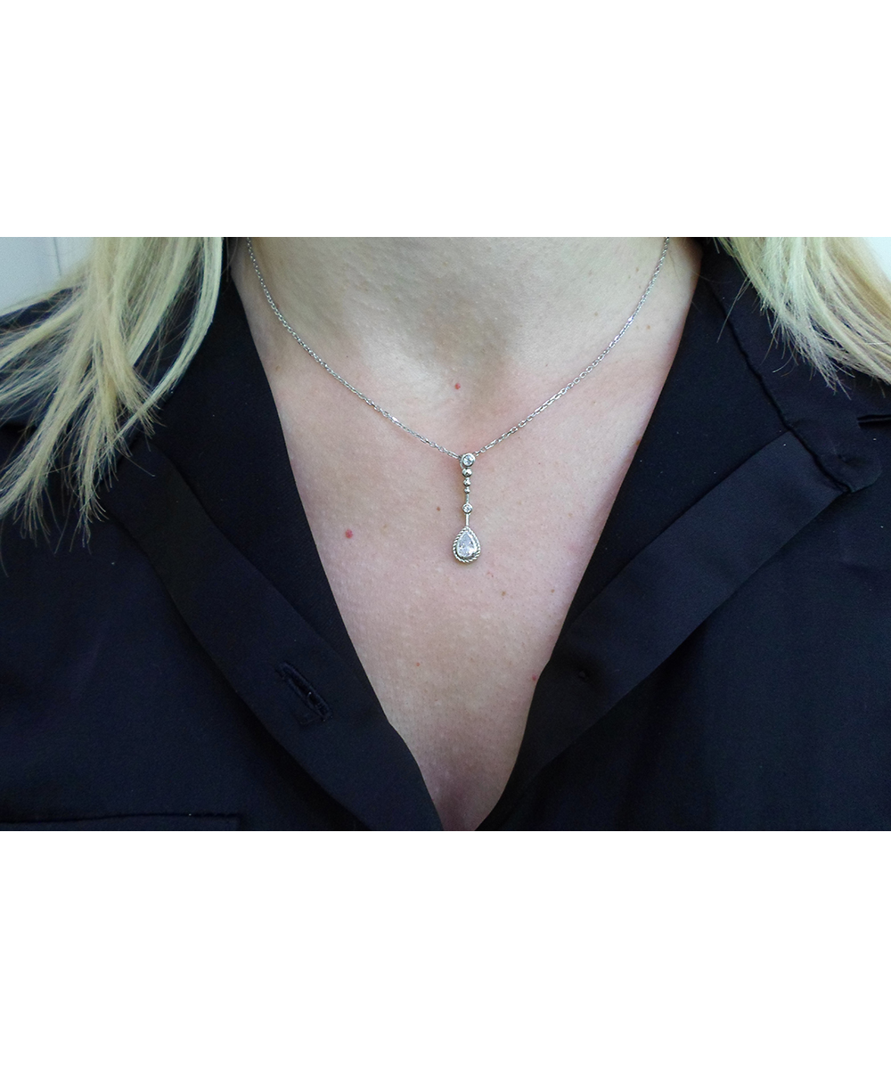 Γυναικείο κολιέ από επιπλατινωμένο ασήμι 925 με πέτρες Ζιργκόν.