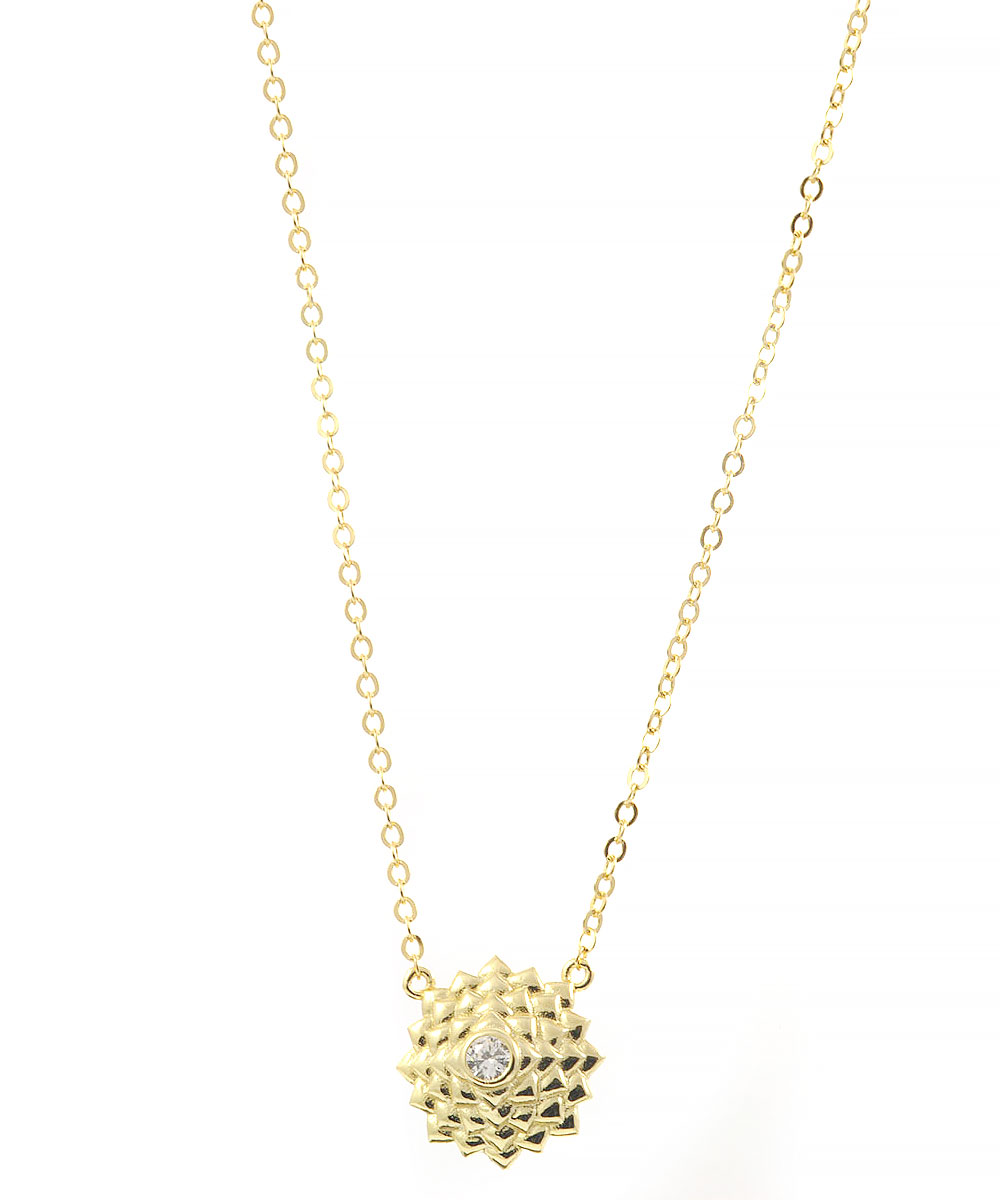 Εντυπωσιακό επιχρυσωμένο κολιέ από ασήμι 925° με κρεμαστό μοτίφ και κεντρικό λευκό ζιργκόν. Η γεωμετρική υφή του προσφέρει ιδιαίτερο χαρακτήρα και λάμψη, ιδανικό για εμφανίσεις που ξεχωρίζουν.