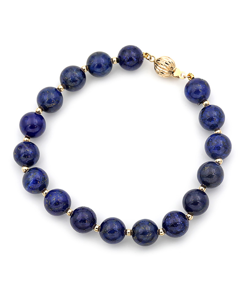 Γυναικείο Βραχιόλι Χρυσό 14 καράτια με πέτρες Λάπις σε σχήμα Round.