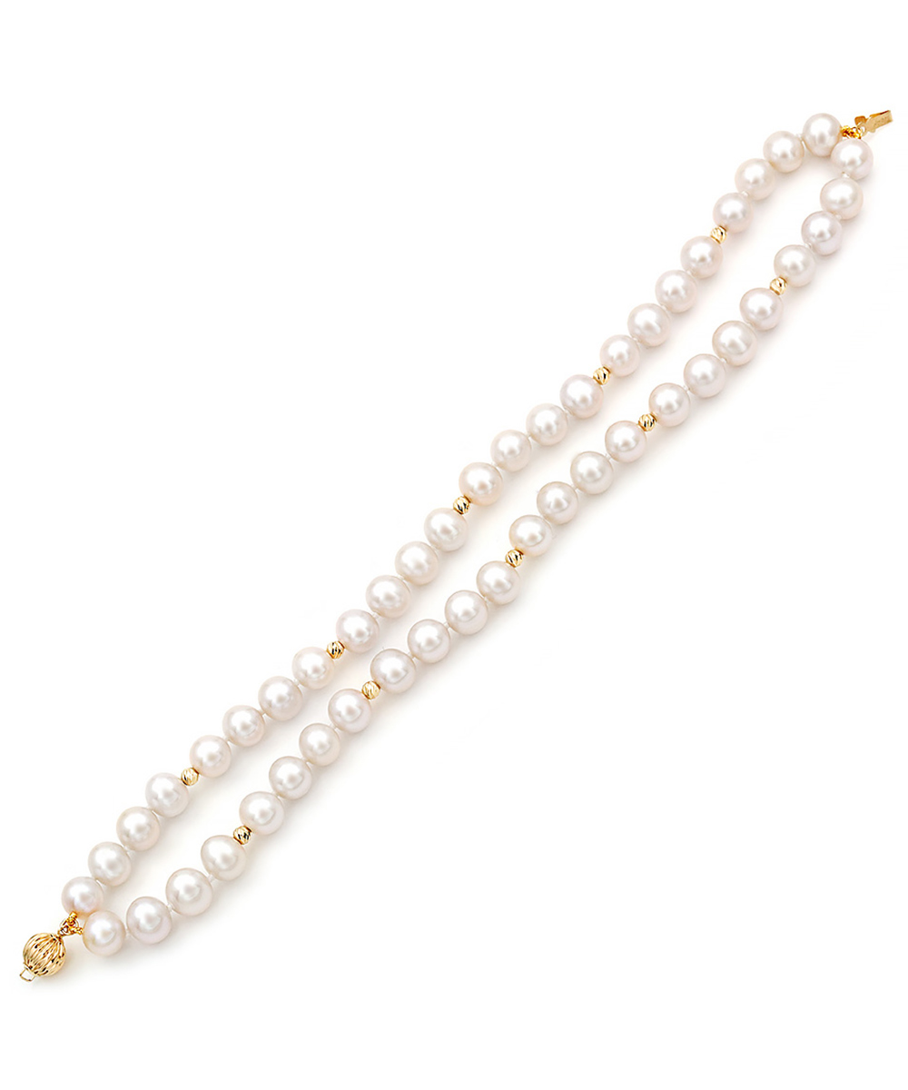 Γυναικείο Βραχιόλι Χρυσό 14 καράτια με λευκά Μαργαριτάρια γλυκού νερού Fresh Water Pearl σε σχήμα Round.
