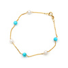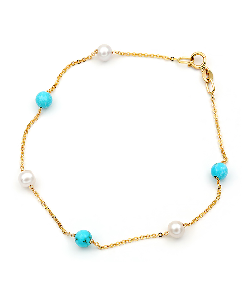 Γυναικείο Βραχιόλι Χρυσό 14 καράτια με λευκά Μαργαριτάρια και με τιρκουάζ πέτρες.