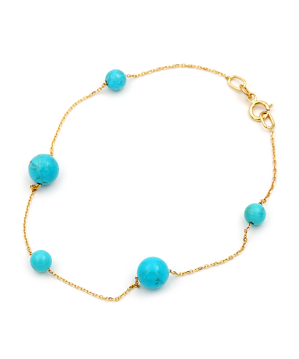Γυναικείο Βραχιόλι Χρυσό 14 καράτια με τιρκουάζ πέτρες.