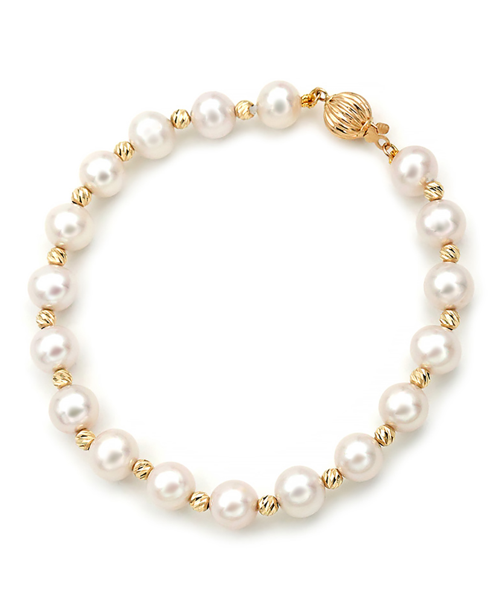 Γυναικείο Βραχιόλι Χρυσό 14 καράτια με λευκά Μαργαριτάρια γλυκού νερού Fresh Water Pearl σε σχήμα Round.