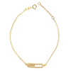 Κομψό χρυσό βραχιόλι 9 καράτια με ορθογώνιο σχέδιο διακοσμημένο περιμετρικά με λευκά ζιργκόν και τρία λαμπερά ζιργκόν στο κέντρο. Διαχρονικό και elegant, ιδανικό για καθημερινή κομψότητα ή ως δώρο.