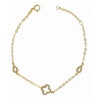 Κομψό βραχιόλι από χρυσό 9 καράτια με κεντρικό μοτίφ σε σχήμα σταυρού διακοσμημένο με λαμπερά ζιργκόν. Τα πλαϊνά στοιχεία σε σχήμα δάκρυ ολοκληρώνουν ένα κομψό και θηλυκό σχέδιο.
