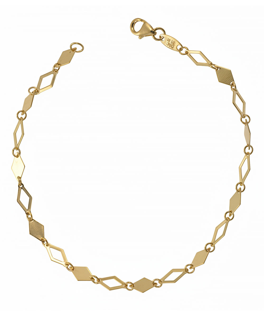 Κομψό βραχιόλι από χρυσό 9 καράτια με εναλλαγή ρόμβων σε γυαλιστερή και ματ υφή. Το γεωμετρικό του μοτίβο δημιουργεί ένα σύγχρονο και ιδιαίτερο κόσμημα που ξεχωρίζει.