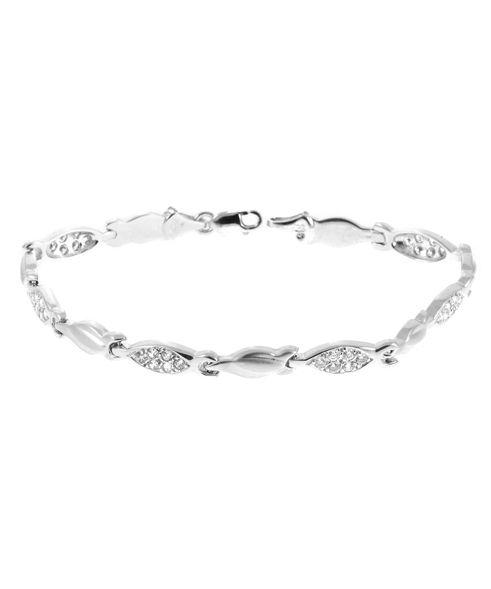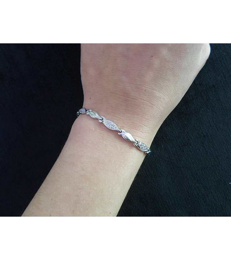 Γυναικείο Βραχιόλι Λευκόχρυσο 14 καράτια με πέτρες Ζιργκόν.