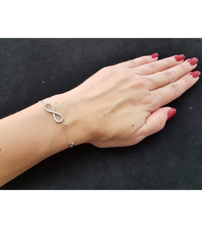 Γυναικείο Βραχιόλι Λευκόχρυσο 14 καράτια με πέτρες Ζιργκόν.